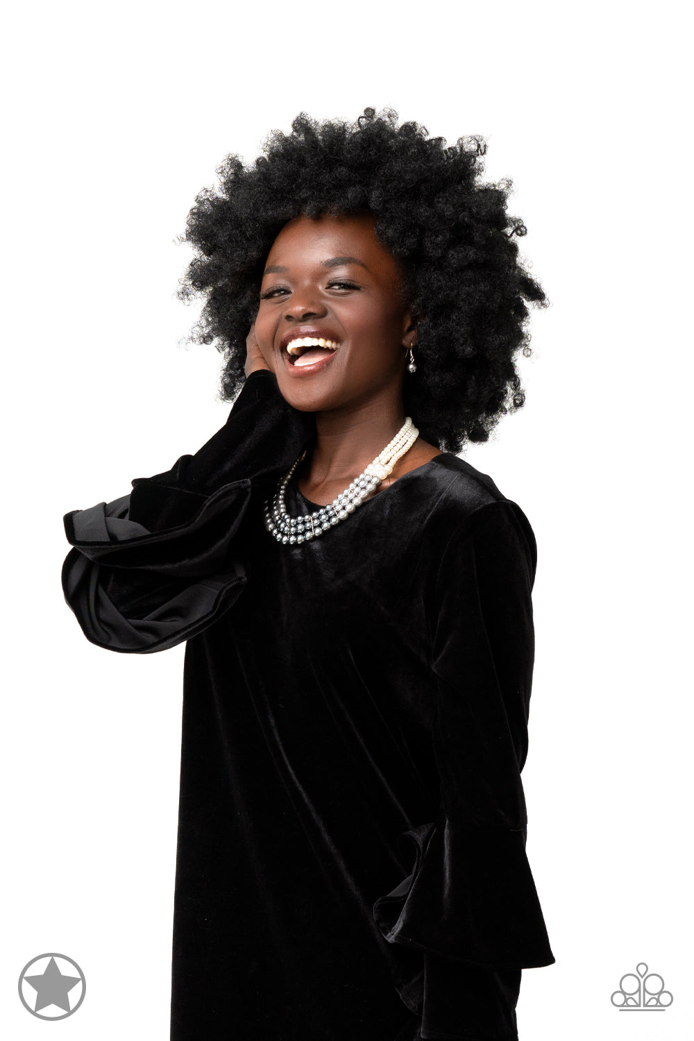 Strands of white, silver, and dark gray pearls elegantly drape below the collar, creating a beautiful ombre effect. Sectioned by silver accents, the luminescent pearls radiantly fall into a glamorous cascade. Features an adjustable clasp closure.